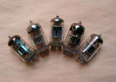 五颗前置电压放大管:6N10,12AX7,12AU7,12AX7,12AU7