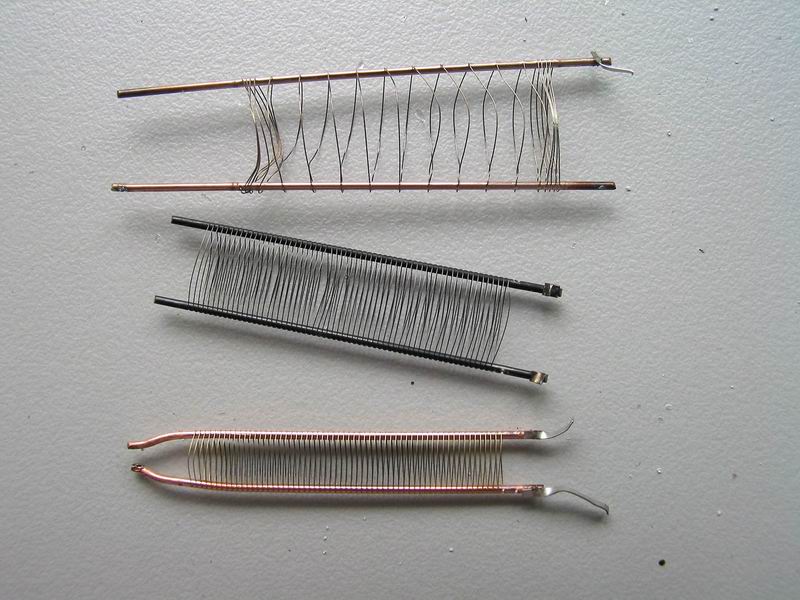 1:阳极;2:栅极,栅极里白色部分是栅极和阴极的绝缘层;3 就是阴极,这是个扁型金属管,灯丝就包在里面啦。